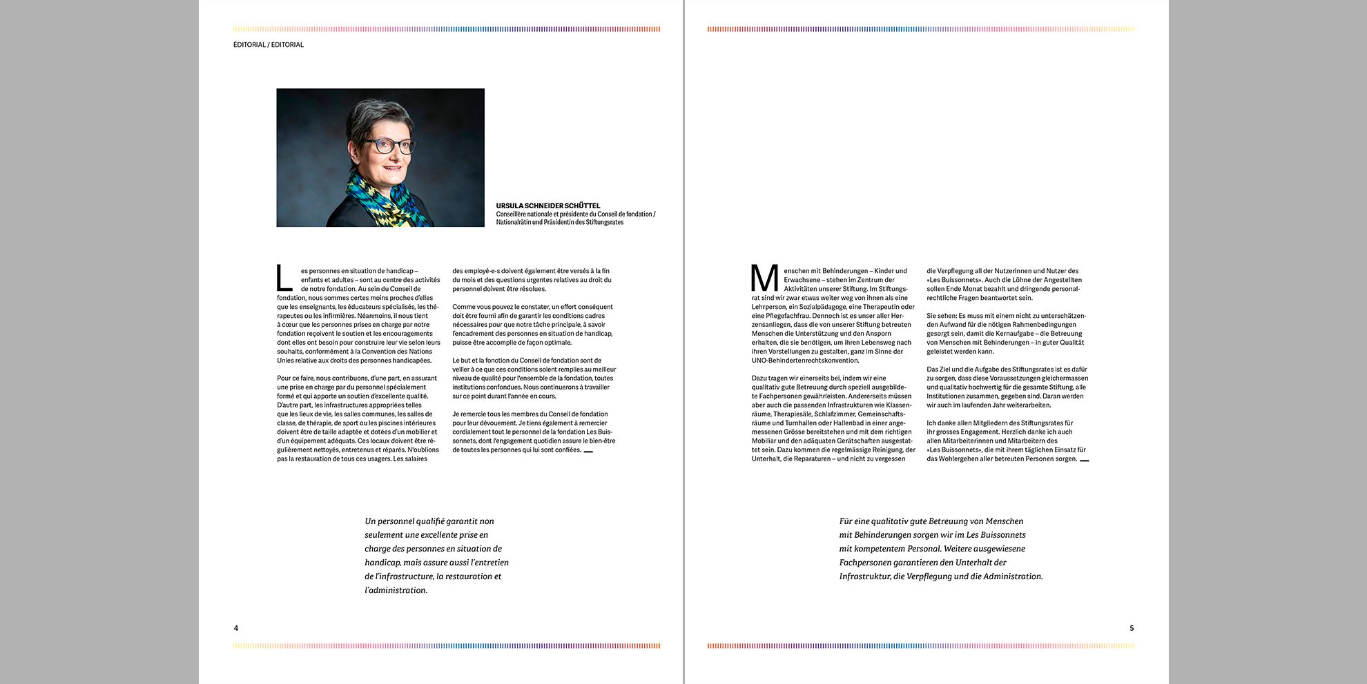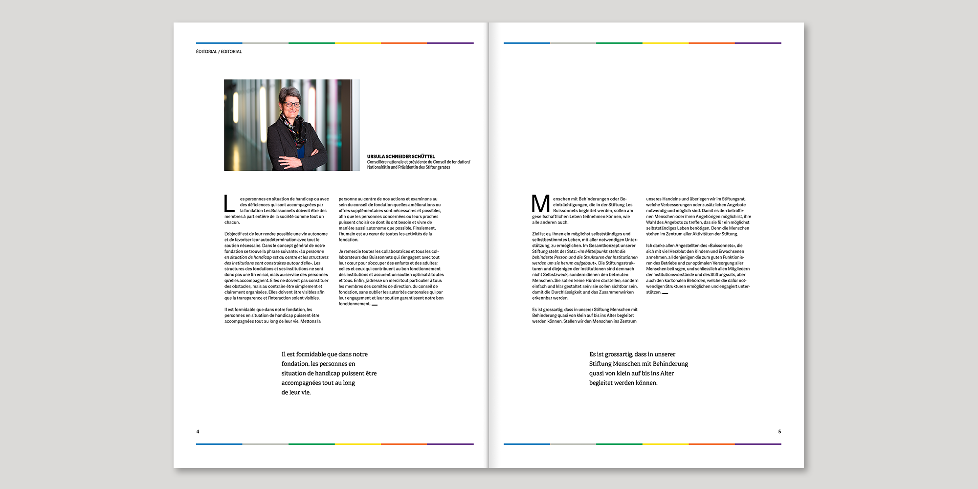 spannende Umsetzung des Inhalts- und Layoutkonzeptes (Font Adelle), angenehme Zusammenarbeit mit Frau Marianne Schmuckli, präzise Druckumsetzung mit CRIC-Print