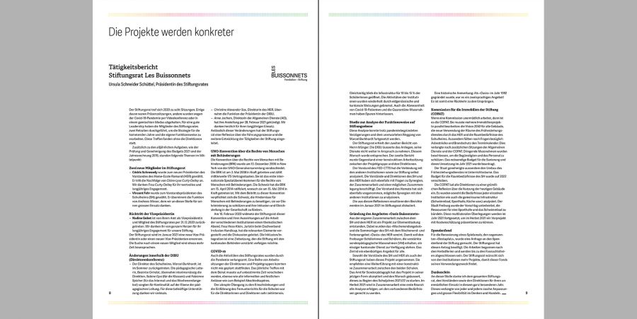 spannende Umsetzung des Inhalts- und Layoutkonzeptes (Font Adelle), angenehme Zusammenarbeit mit Frau Marianne Schmuckli, präzise Druckumsetzung mit CRIC-Print